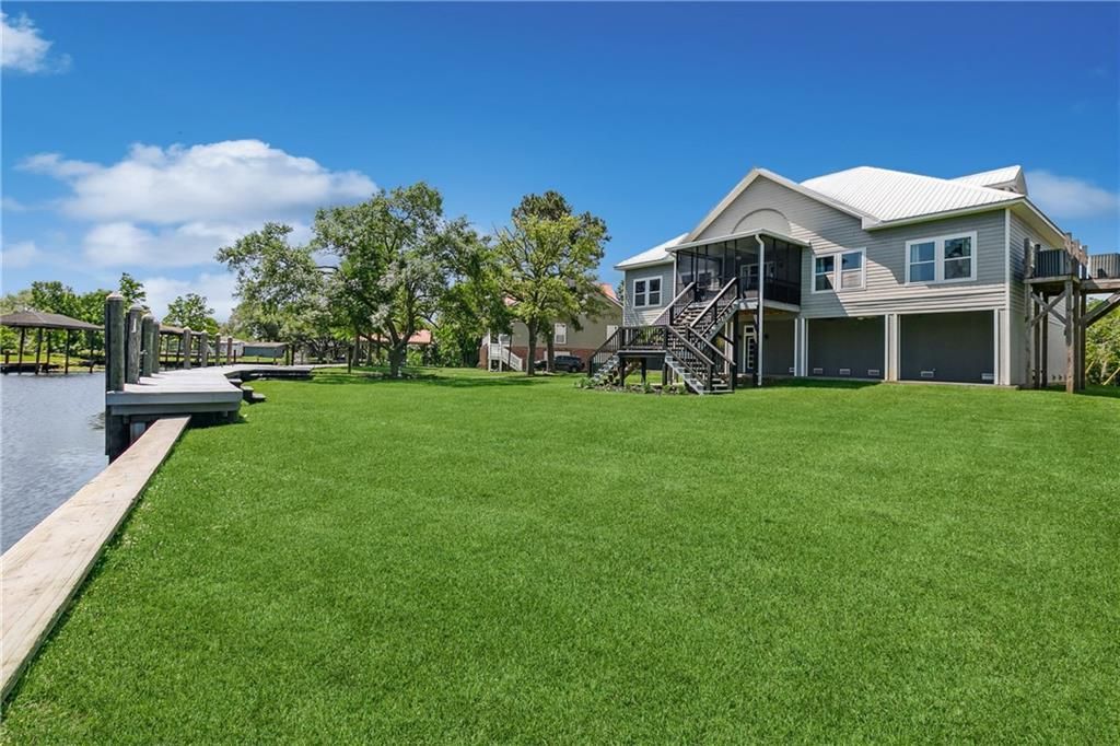 Stunning waterfront home on Bayou Bonfouca, offering direct access to Lake Pontchartrain in minutes. With 155 feet of waterfront, a 95-foot dock, and your own private boat launch, everyday life here can include sunset boat rides, fishing or crabbing from your dock, and peaceful evenings watching wildlife drift along the bayou. Inside, the home is designed for both comfort and entertaining. The gourmet kitchen features a large island, matching quartz countertops, soft-close Thomasville cabinetry, stainless appliances, and double ovens, making it the natural gathering place after a day on the water. The home offers three private suites, including a spacious upstairs retreat with cathedral ceilings, exposed beams, and its own sitting area. A large flex room provides space for a game room, office, or media room. Following a rebuild, the home was wrapped in Structural Insulated Panels (SIPS)?an approximately $43,000 upgrade designed for exceptional strength and energy efficiency while helping reduce heating and cooling costs. The kitchen was so impressive that Home Depot showcased the home as a cabinet display reference for nearly two years. Recent improvements include engineered wood plank flooring (2020), new refrigerator and dishwasher (2025), updated front entry steps and porch fan (2025), and a touch-activated kitchen faucet with lifetime warranty. Systems have been professionally maintained with HVAC, plumbing, and electrical inspections completed in 2025. The home also features a metal roof, stainless appliances, and approximately 3,000 sq ft of ground-level garage / usable storage space with rear yard vehicle access. Enjoy the views from the screened porch overlooking the oversized ground-level patio, and take advantage of an assumable flood insurance policy currently around $1,036 per year. A rare opportunity to own a waterfront home that combines location, lifestyle, and thoughtful construction.